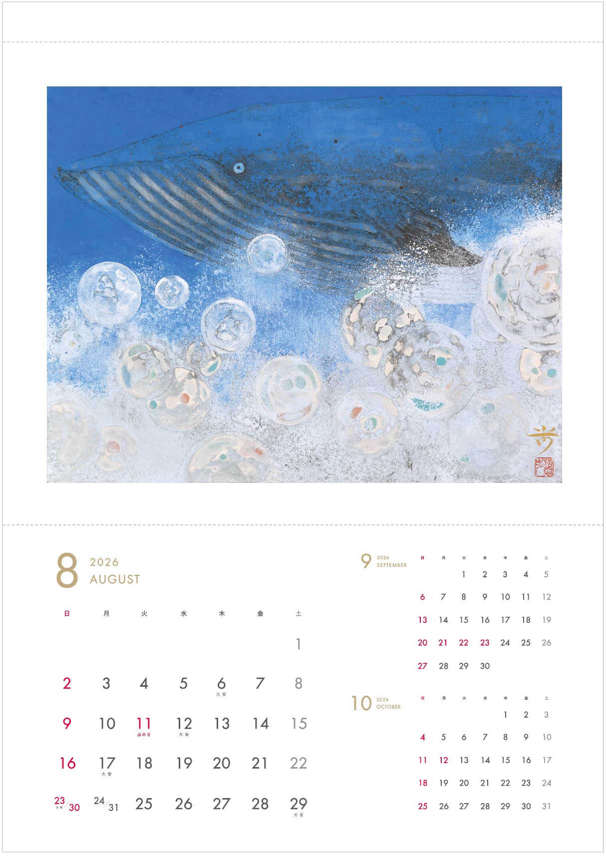 作品部分で切取ミシン線がついており、作品部分を額に入れて飾れます。