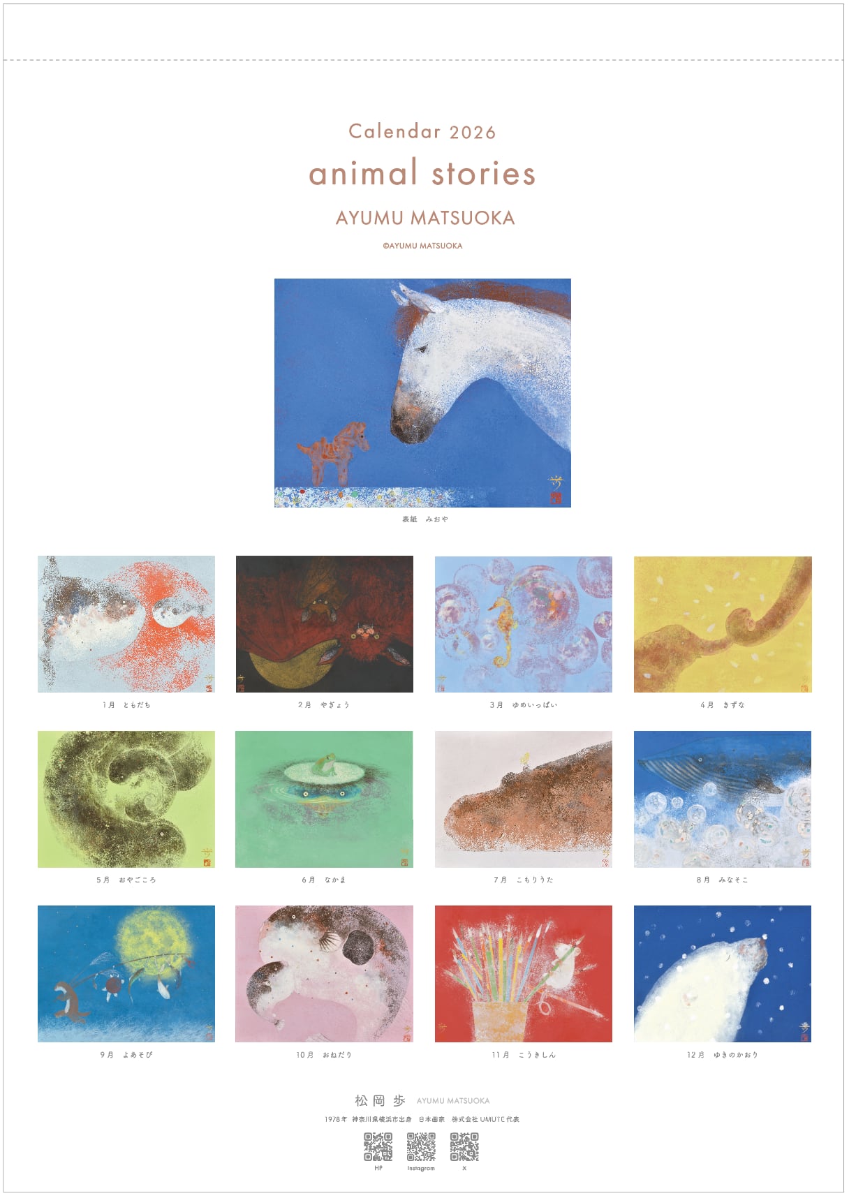 松岡歩カレンダー2026 -animal stories-